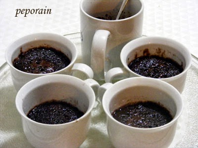(וכן, אפשר גם כמו במתכון המקורי להשתמש בספל אחד גדול בלבד... אך זה כבר מוגזם לאכול את כל העוגה לבד... בחושך... יאמי... לא, לא, עדיף שתחלקו לכמה ספלים...)
