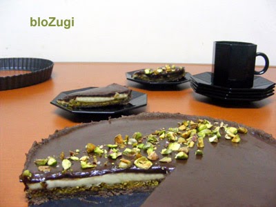 טארט שוקולד עם מילוי שוקולד לבן ופיסטוקים