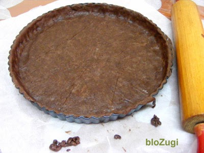 להעביר את הבצק על נייר אפייה ולרדד לעיגול בקוטר קצת יותר גדול מקוטר התבנית. לשמן את התבנית ואת הדפנות בחמאה. להרים את הבצק בזהירות ולהעביר אותו לתוך התבנית. לסדר את השוליים - להדק אותן עם האצבעות לדפנות התבנית. יישארו קצת שוליים אקסטרה - לעבור עם מערוך על החלק העליון של התבנית ואז השוליים העודפים ייפרדו בקלות.