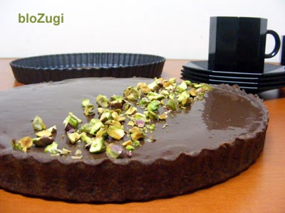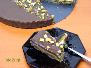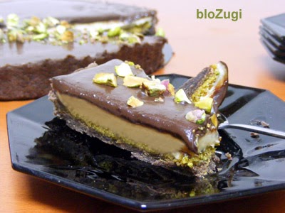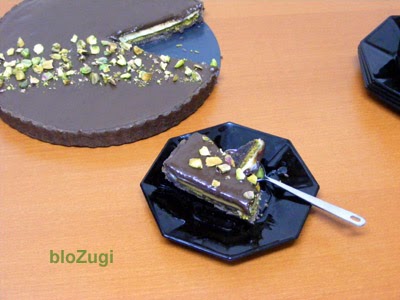פעם ראשונה שטעמתי שילוב של פיסטוק עם שוקולד לבן היה במתכון של קרין גורן - פאדג פסים עם שוקולד לבן ללא אפיה. הכנתי אותו לחנוכת בית אצלנו לפני כשנה ואנשים לא הפסיקו להתפעל. ואני רק קיוויתי שיאכלו כמה שיותר, כי מה שיישאר, נצטרך לאכול אנחנו. עלול להיות בעייתי, כי זה קינוח... איך נגדיר... לא בדיוק דל קלוריות. שוקולד לבן. חלב מרוכז. פיסטוק. כמעט טעים מדי בשביל להיות אמיתי. לכן כשפורסם חומר הגלם החדש - נזכרתי בשילוב זה וכבר לא יכולתי לחשוב על שום דבר אחר. ידעתי שזה יהיה הבסיס למתכון שלי החודש. אך בגלל ששוקולד לבן בשבילי הוא בגדר ממתק טעים, אך לא באמת שוקולד, הייתי חייבת לשדך לזה גם שוקולד מריר. כך התחיל להתגבש אצלי מתכון לטארט. בשיא הצניעות - יצא לי קינוח גורמה... ושוב ממש לא דל קלוריות...